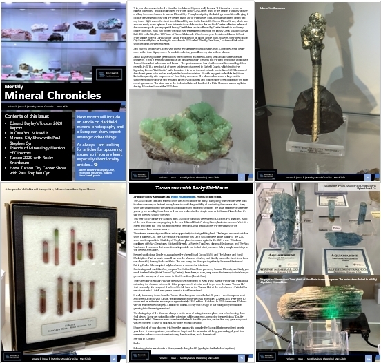 Monthly Mineral Chronicles is a publication pulled together by a mineral collector for mineral collectors.